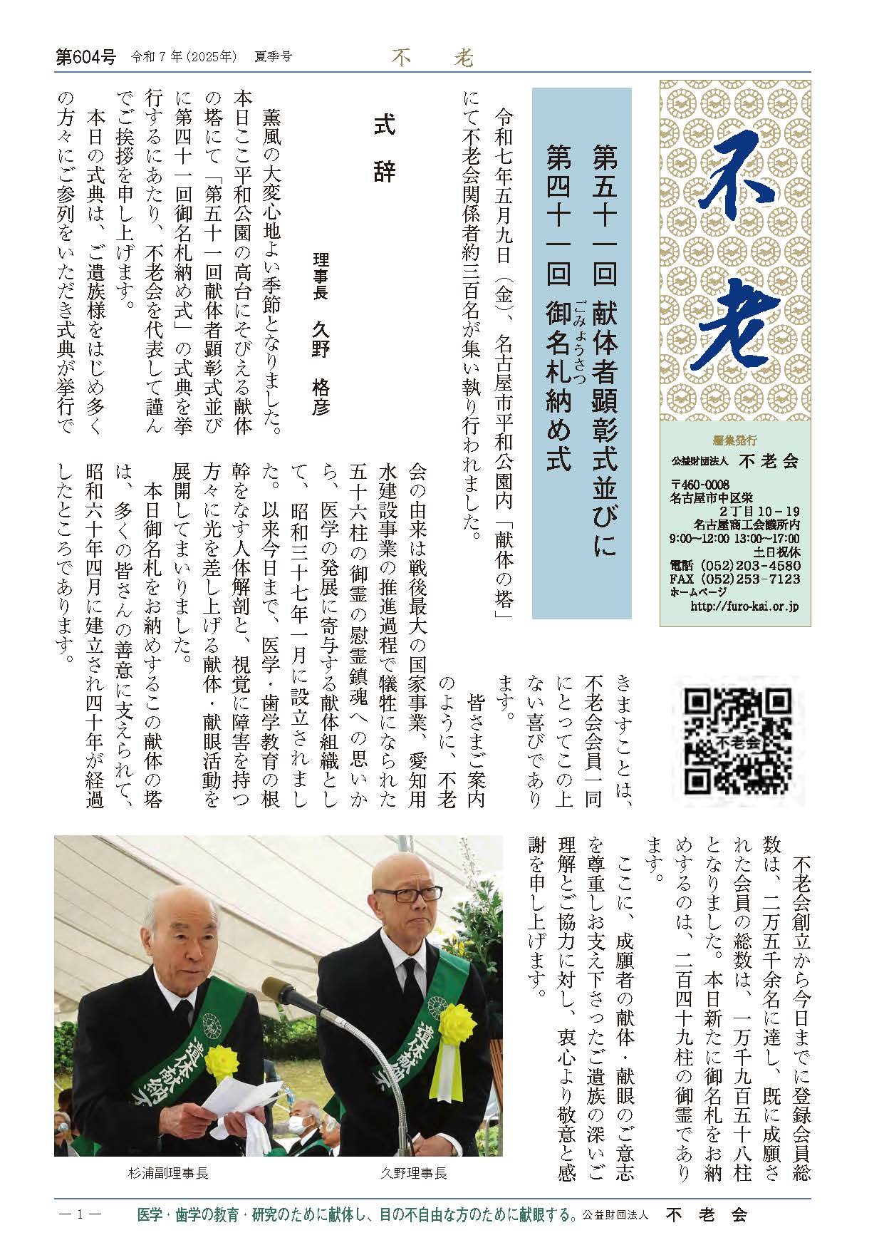 会員さまのお手元にお届けしている会報誌「不老」は年4回発行しています。